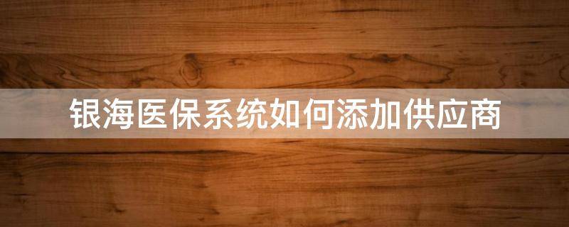 银海医保系统如何添加供应商