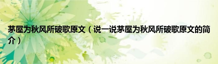 茅屋为秋风所破歌原文(说一说茅屋为秋风所破歌原文的简介)