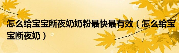 大家好,乐天来为大家解答以下的问题,怎么给宝宝断夜奶奶粉最快最有效,怎么给宝宝断夜奶很多人还不知道,现在让我们一起来看看吧!