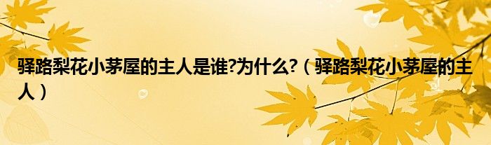 关于驿路梨花小茅屋的主人是谁?为什么?,驿路梨花小茅屋的主人这个很多人还不知道,今天菲菲来为大家解答以上的问题,现在让我们一起来看看吧!