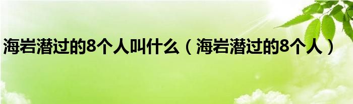 关于海岩潜过的8个人叫什么,海岩潜过的8个人这个很多人还不知道,今天菲菲来为大家解答以上的问题,现在让我们一起来看看吧!