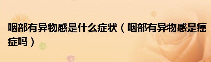 大家好,乐天来为大家解答以下的问题,咽部有异物感是什么症状,咽部有异物感是癌症吗很多人还不知道,现在让我们一起来看看吧!