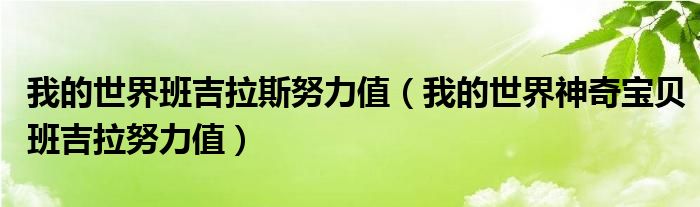 关于我的世界班吉拉斯努力值,我的世界神奇宝贝班吉拉努力值这个很多人还不知道,今天菲菲来为大家解答以上的问题,现在让我们一起来看看吧!