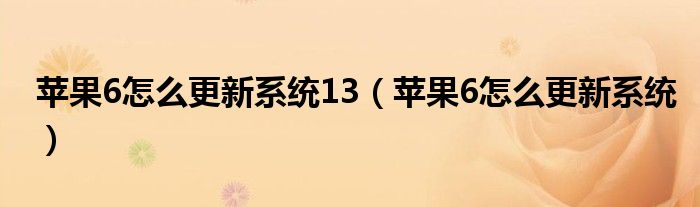 关于苹果6怎么更新系统13,苹果6怎么更新系统这个很多人还不知道,今天菲菲来为大家解答以上的问题,现在让我们一起来看看吧!
