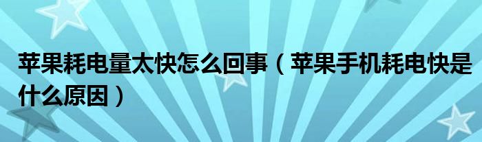 苹果耗电量太快怎么回事(苹果手机耗电快是什么原因)