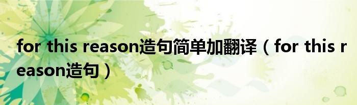 关于for this reason造句简单加翻译,for this reason造句这个很多人还不知道,今天菲菲来为大家解答以上的问题,现在让我们一起来看看吧!
