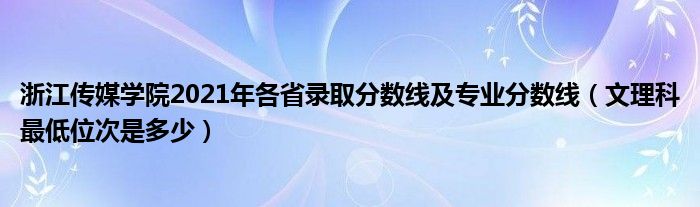 大家好,乐儿来为大家解答以下问题,浙江传媒学院2021年各省录取分数线及专业分数线,文理科最低位次是多少很多人还不知道,现在让我们一起来看看吧!