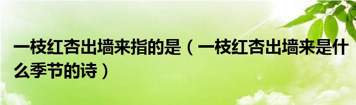 大家好,乐儿来为大家解答以下问题,一枝红杏出墙来指的是,一枝红杏出墙来是什么季节的诗很多人还不知道,现在让我们一起来看看吧!