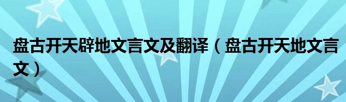 关于盘古开天辟地文言文及翻译,盘古开天地文言文这个很多人还不知道,今天菲菲来为大家解答以上的问题,现在让我们一起来看看吧!
