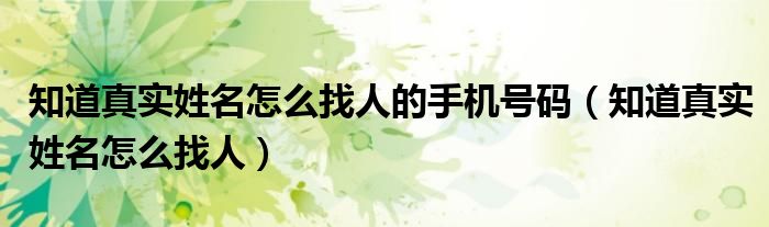 知道真实姓名怎么找人的手机号码(知道真实姓名怎么找人)