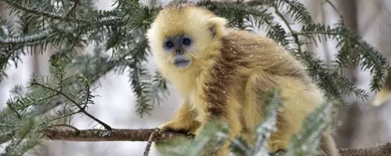3、滇金丝猴:栖息于海拔3000米以上的高山暗针叶林带,活动范围可从2500米到5000米的高山,以松萝、竹笋、植物的嫩叶、嫩芽和花苞等为食。