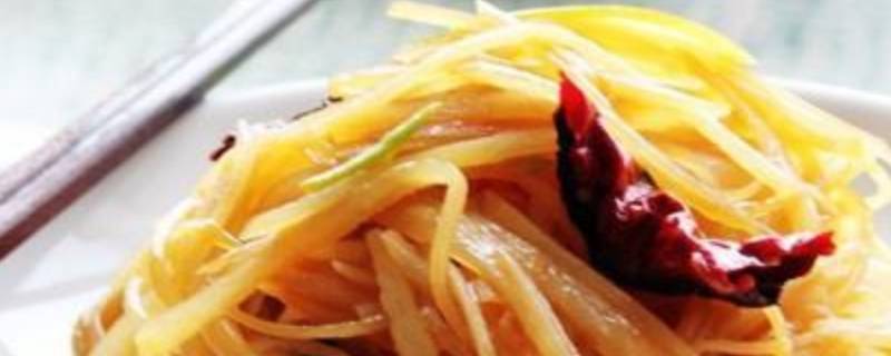 7、倒入土豆丝,炒至八成熟时加入精盐、味精、香油、白醋,炒熟即可。