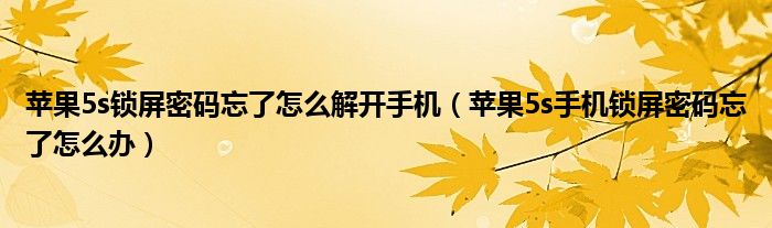 关于苹果5s锁屏密码忘了怎么解开手机,苹果5s手机锁屏密码忘了怎么办这个很多人还不知道,今天菲菲来为大家解答以上的问题,现在让我们一起来看看吧!