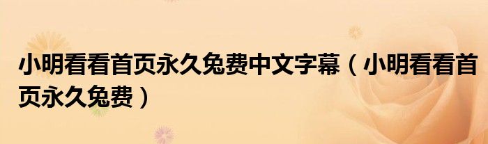 关于小明看看首页永久兔费中文字幕,小明看看首页永久兔费这个很多人还不知道,今天菲菲来为大家解答以上的问题,现在让我们一起来看看吧!