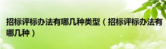 关于招标评标办法有哪几种类型,招标评标办法有哪几种这个很多人还不知道,今天菲菲来为大家解答以上的问题,现在让我们一起来看看吧!