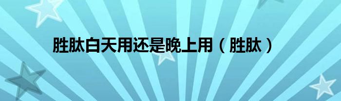 大家好,小联来为大家解答以上的问题。胜肽白天用还是晚上用,胜肽这个很多人还不知道,现在让我们一起来看看吧!