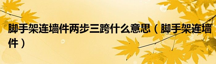 关于脚手架连墙件两步三跨什么意思,脚手架连墙件这个很多人还不知道,今天菲菲来为大家解答以上的问题,现在让我们一起来看看吧!