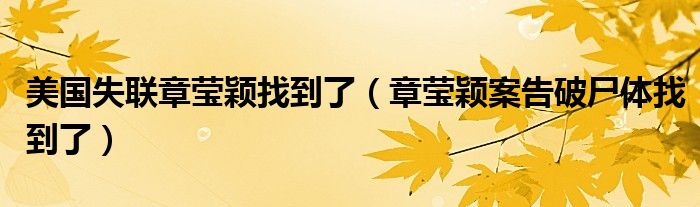 关于美国失联章莹颖找到了,章莹颖案告破尸体找到了这个很多人还不知道,今天菲菲来为大家解答以上的问题,现在让我们一起来看看吧!