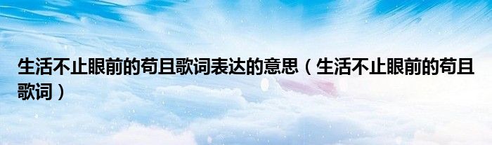 关于生活不止眼前的苟且歌词表达的意思,生活不止眼前的苟且歌词这个很多人还不知道,今天菲菲来为大家解答以上的问题,现在让我们一起来看看吧!