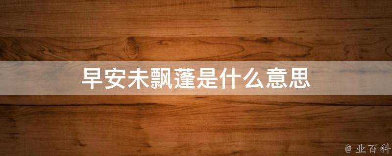早安未飘蓬指的是早些时候还未飘泊无定。飘蓬的意思是飘飞的蓬草,比喻飘泊无定、飘垂蓬松。出自唐朝贾岛《送友人游塞》诗:飘蓬多塞下,君见益潸然。陆采《怀香记受诏参戎》记载:身似飘蓬逐水流,当此际岂堪回首。