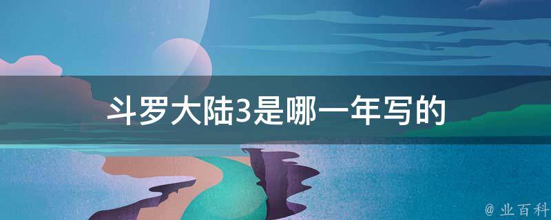 最佳答案斗罗大陆3是2015年写的,《斗罗大陆III龙王传说》是唐家三少所著异世大陆类玄幻小说。《斗罗大陆III龙王传说》是《斗罗大陆》系列第三部作品,讲述的是《斗罗大陆II绝世唐门》一万年之后的故事,作品继承了《斗罗大陆》系列的诸多设定。