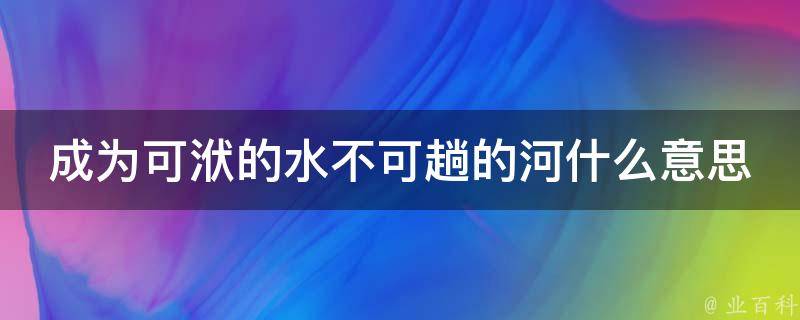 成为可洑的水不可趟的河的意思是一个人或事物具有独特的品质或特点,使其无法被轻易改变或违背。意味着这个人或事物具有高尚的品质或价值,它强调了这个人或事物的独特性和不可动摇的特点。