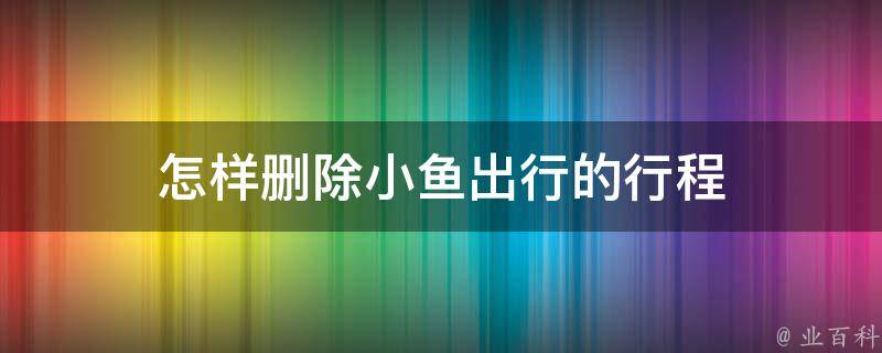 最佳答案1、打开小鱼出行APP,点击主界面右下角我的,进入个人中心。2、在个人中心中,点击行程,进入行程管理页面。3、选择需要删除的行程,点击右侧的垃圾桶图标。4、在弹出的窗口中点击确定,即可删除行程。