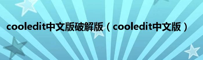 cooledit中文版破解版(cooledit中文版)