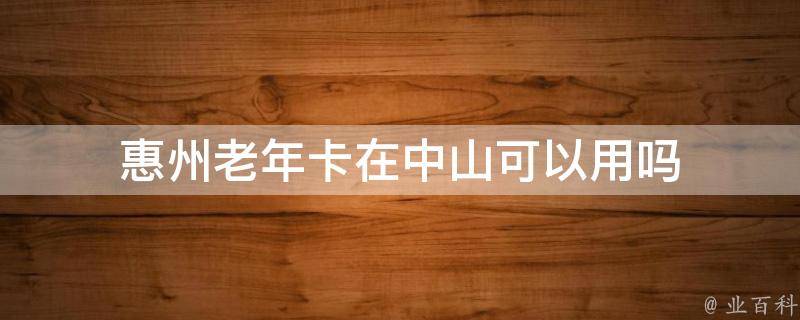 惠州老年卡在中山可以用。广东省内的公共交通服务基本上已经实现了全省互通,因此,持有惠州老年卡可以在中山乘坐公共交通工具,如公交车、地铁等。此外,持有惠州老年卡还可以享受中山市的一些优惠政策,如免费游览公园、免费观看部分电影等。