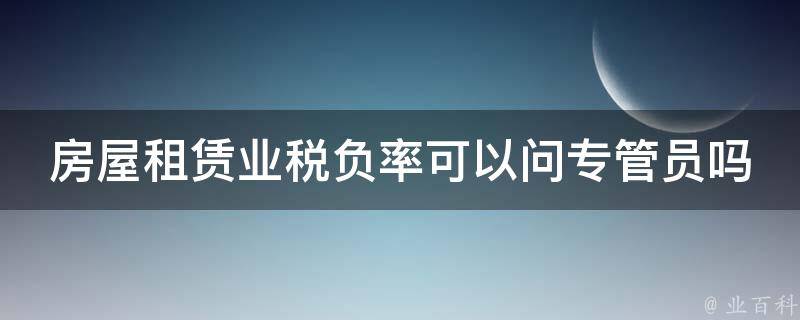 房屋租赁业税负率可以询问专管员。专管员可以提供房屋租赁业税负率的相关信息。房屋租赁业税负率与市场形势、同行业、同产品等有关,且会随着时间变化而产生较大差异。专管员是指负责某种特定事务的人员。例如,房屋租赁中负责本区域房屋租赁登记备案的受理工作的政府工作人员。