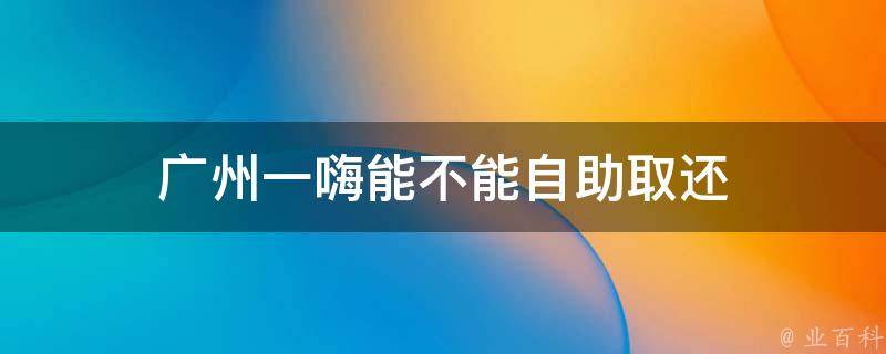 广州一嗨能自助取还。一嗨租车推出的自助取还服务,依托移动互联网技术,用户打开一嗨租车APP,选择带有自助取还的车型,按正常流程完成下单,即可体验自助取还服务。这种服务不仅方便快捷,还可以大大降低用户租车的成本。