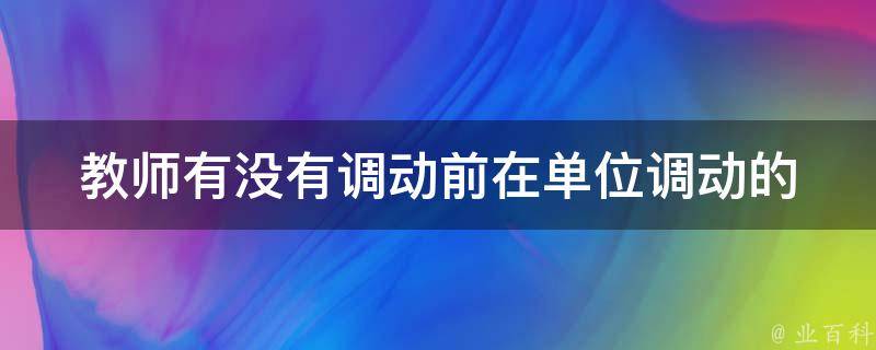 教师有调动前在单位调动的,教师在调动前需在原单位工作满两年以上。此外,教师在调动前应具有相应的教师资格证书,并且在原单位表现良好。教师在调动前应具有相应的学历背景。例如,小学教师应具有本科及以上学历;初中教师应具有本科及以上学历;高中教师应具有硕士及以上学历。