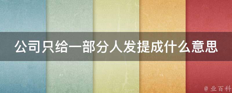 公司只给一部分人发提成,意味着只有部分员工可以获得提成奖金。这通常是因为这部分员工在公司的销售业绩或工作表现方面达到了较高的水平,或者公司根据其业务需求和员工表现进行有针对性的激励措施。