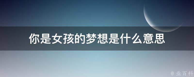 你是女孩的梦想这个说法通常意味着女孩认为你有吸引人的特质或者特点,甚至将你视为自己的偶像或榜样。这个说法可能暗示着你具有某种特殊的魅力或吸引力,能够让女孩对你产生强烈的兴趣和好感。