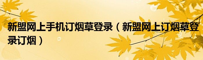 今天小饼为大家解答以下问题,关于新盟网上手机订烟草登录,新盟网上订烟草登录订烟很多人还不知道,现在让我们一起来看看吧!