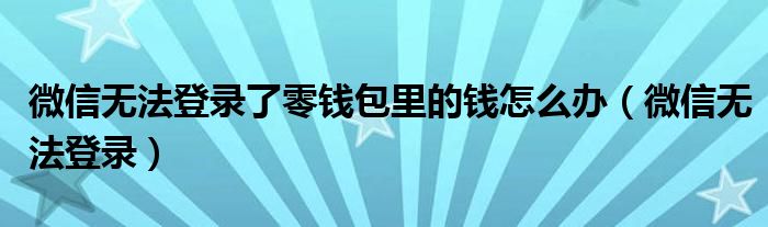 今天小饼为大家解答以下问题,关于微信无法登录了零钱包里的钱怎么办,微信无法登录很多人还不知道,现在让我们一起来看看吧!