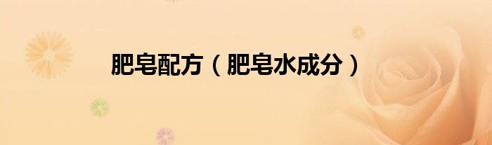 大家好,我是小科,我来为大家解答以上问题。肥皂配方,肥皂水成分很多人还不知道,现在让我们一起来看看吧!
