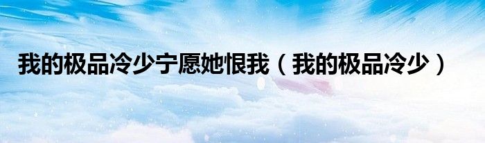 大家好,我是小科,我来为大家解答以上问题。我的极品冷少宁愿她恨我,我的极品冷少很多人还不知道,现在让我们一起来看看吧!