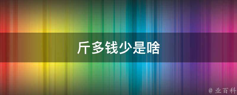 斤多钱少指的是某种事物数量很少,并且钱也不多。钱、两、斤都是我国传统的衡器单位,历史上的一两是十钱,一斤是十六两。斤在现代多用于重量单位名称,一斤等于十两,旧制为十六两,合二分之一千克。有了斤的重量,再去算两的重量就很容易了。