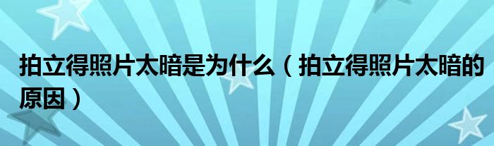 各位网友们好,我是编辑小夏,为大家解答拍立得照片太暗是为什么,拍立得照片太暗的原因问题。一起往下看看
