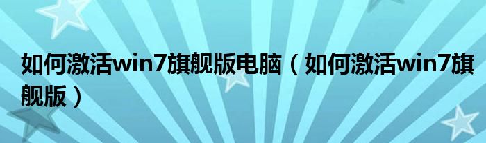 今天小饼为大家解答以下问题,关于如何激活win7旗舰版电脑,如何激活win7旗舰版很多人还不知道,现在让我们一起来看看吧!