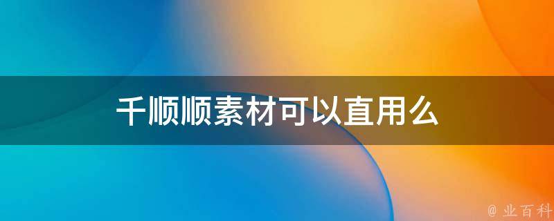 千顺顺素材不可以直用。因为千顺顺上面的视频素材可能受到版权保护,未经授权使用可能涉及侵权问题。如果想使用千顺顺短剧上的视频素材,建议先与相关版权方联系,获取授权或者使用其他合法途径获取视频素材。