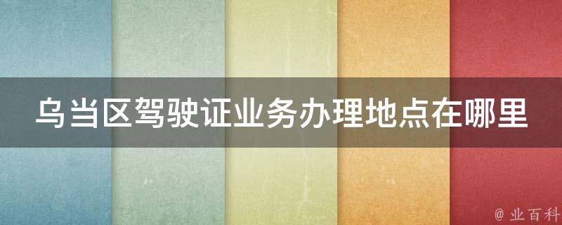 乌当区驾驶证业务办理地点在贵阳市公安交通管理局乌当区分局车管分所,地址为贵阳市乌当区新添大道北段99号。需要注意的是,办理驾驶证业务需要前往车管分所,而不是派出所或政务大厅。在办理驾驶证业务时,需要携带身份证、驾驶证等相关证明材料,并按照规定缴纳相关费用。