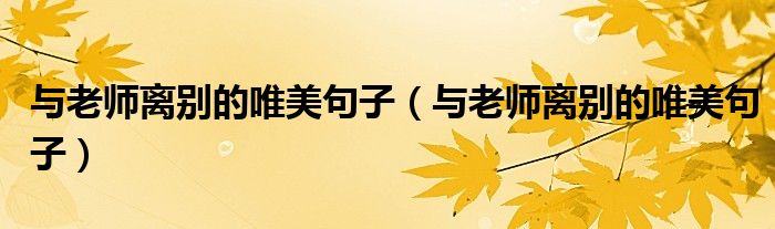 大家好,小联来为大家解答以上的问题。与老师离别的唯美句子,与老师离别的唯美句子这个很多人还不知道,现在让我们一起来看看吧!