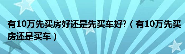 大家好,我是小科,我来为大家解答以上问题。有10万先买房好还是先买车好?,有10万先买房还是买车很多人还不知道,现在让我们一起来看看吧!