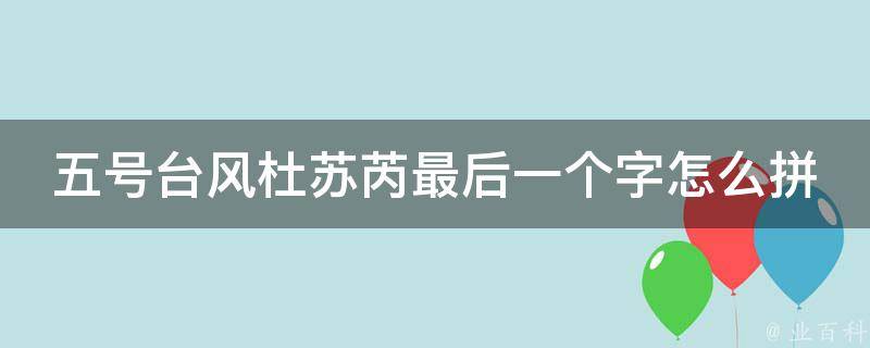 五号台风杜苏芮最后一个字的拼法是rui。超强台风杜苏芮是2023年太平洋台风季第5个被命名的风暴。台风杜苏芮于2023年7月21日上午在西北太平洋洋面生成。此后其逐渐发展增强为超强台风,于7月25日达到中央气象台认定的峰值强度(62米/秒);于7月26日凌晨登陆菲律宾富加岛。