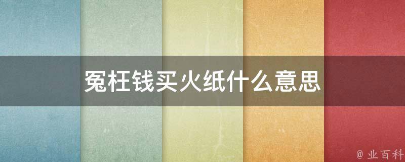 最佳答案冤枉钱买火纸的意思是花钱买了教训。这句谚语的含义是,花费了大量的钱财购买火纸,但实际上这些钱财并没有起到应有的作用,只是白白地浪费了。它暗示人们在做事之前应该三思而后行,不要盲目地去做某件事,以免浪费时间和金钱。