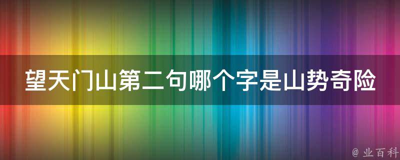 最佳答案望天门山第二句中的回字写出了山势奇险。望天门山的原句是:天门中断楚江开,碧水东流至此回。两岸青山相对出,孤帆一片日边来。《望天门山》是唐代大诗人李白的诗作,此诗描写了诗人舟行江中顺流而下远望天门山的情景。
