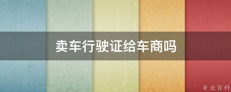最佳答案卖车行驶证给车商。一般来说,卖车需要的手续主要包括行驶证、车辆登记证书、车辆发票、车主身份证原件,另外需要车辆到场。在交易过程中,车商需要验车、查询、违章复印、提交手续、支付交易费用、接收交易手续和交易发票等。