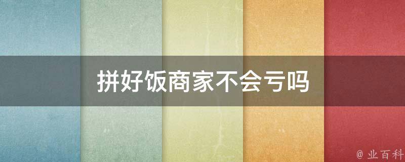 拼好饭商家不会亏吗